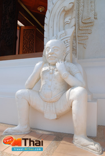 โดยทุกทิศของฐานพระธาตุ จะมีรูปปั้นเป็นหน้ายักษ์ ลิง พราหมณ์ และรูปล้อนักการเมือง และกีฬา แบกฐานขององค์พระธาตุเอาไว้ สื่อถึงพระพุทธศาสนา ต้องการให้ทุกๆ คนมีส่วนร่วมอุปภัมถ์ไปพร้อมๆกัน