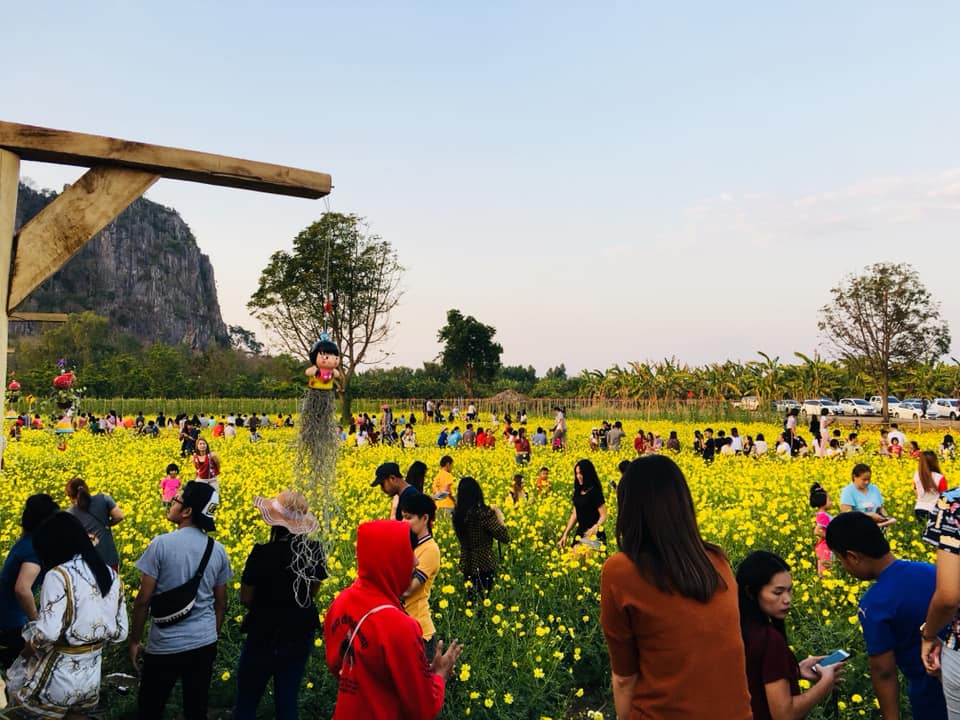 ทุ่งดาวกระจาย สีเหลืองสดใส กำลังเบ่งบานสะพรั่งบนพื้นที่ขนาด 6 ไร่ บริเวณร้าน Wood House โดยมีเขาฉกรรจ์ ตั้งตระหง่านเป็นฉากหลัง ซึ่งทางร้านก็ได้สร้างสะพานไม้ทอดยอดเข้าไปในไร่ เพื่อให้นักท่องเที่ยวเดินเข้าไปชมและถ่ายรูปกับดอกดาวกระจายได้ใกล้ชิดมากขึ้น